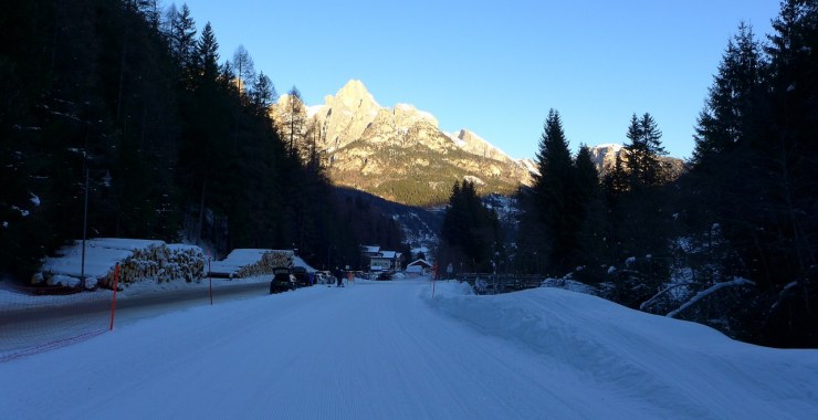 Si arriva a fondovalle e dopo aver attraversato un torrente inizia la parte meno adrenalinica della pista. L'ambiente è spettacolare soprattutto in pieno inverno e dopo una nevicata è molto rilassante percorrere tutta la parte bassa della Val San Nicolò.